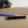 Descripción: Bolígrafo metálico negro con detalles cromados. Para utilizarlo, es necesario tirar de los dos extremos, ya que al tomar su tamaño regular, la punta queda expuesta para poder utilizarlo. De la misma manera, para contraer el repuesto, será necesario regresarlo a su posición original. Tinta Negra. Incluye estuche individual.