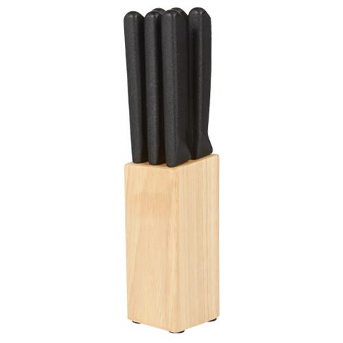 Descripción: SET DE CUCHILLOS CORVI (Incluye 6 cuchillos y base de madera.) |